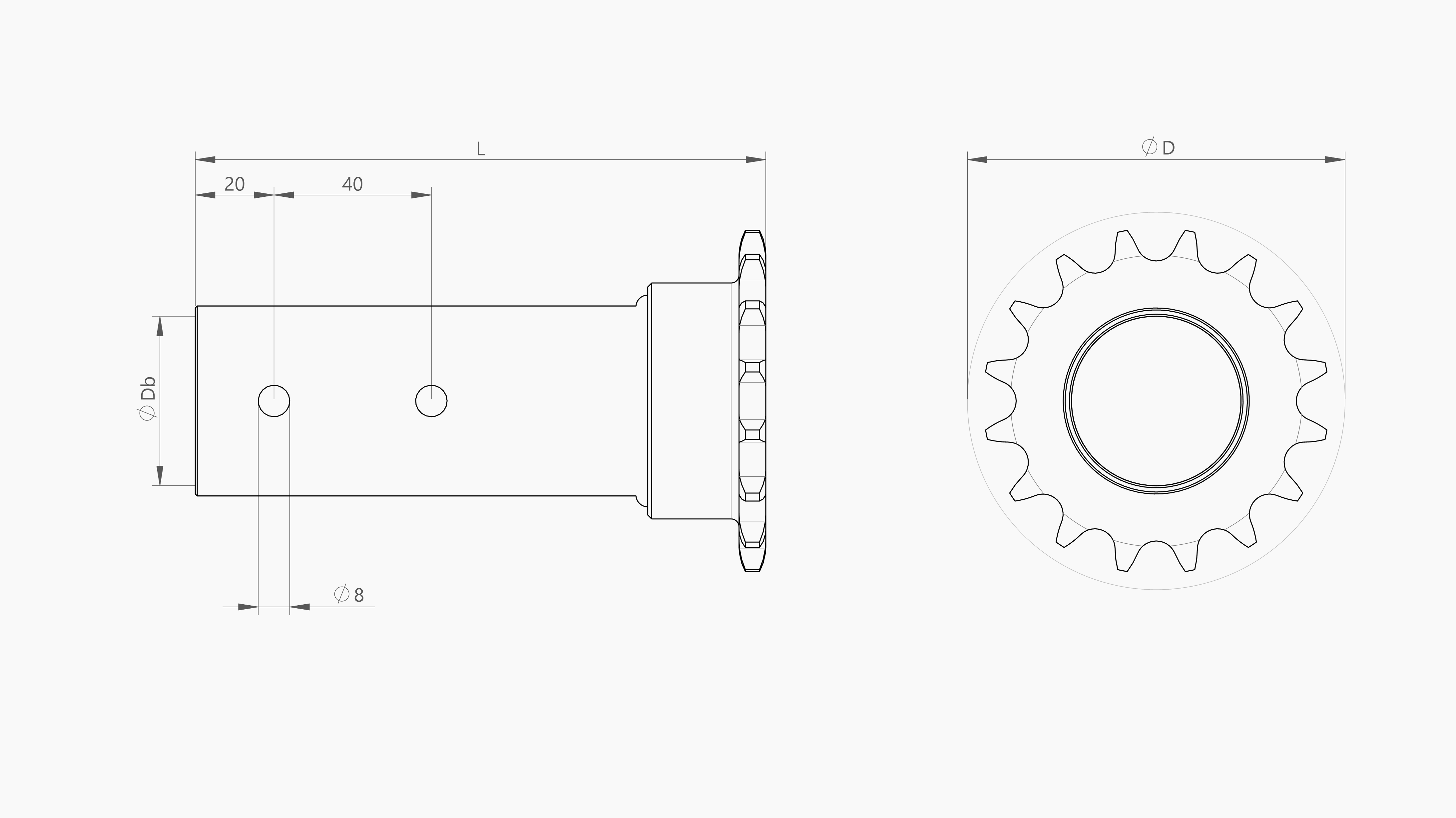 | Artikel | Omschrijving | Ketting | As | Tmax [Nm] | Db [mm] | D [mm] | L [mm] | m [kg] |