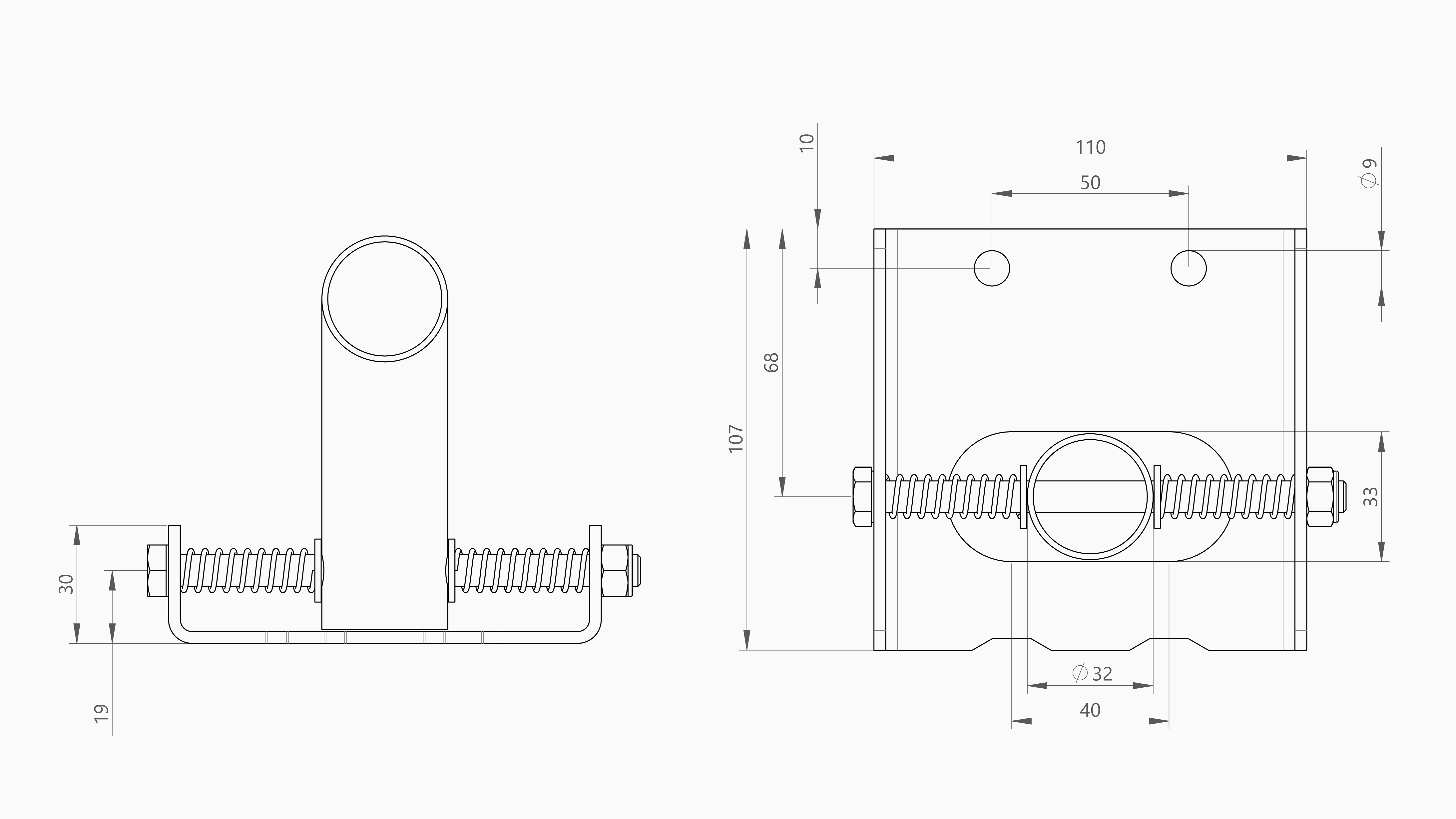Met de verzinkte montageplaat voor de GXP10 geleiding vindt montage plaats van de Ø32 mm geleidingsbuis op de betonvoet of vloer worden vastgezet. Door de veerconstructie kan de buis zijdelings uitwijken en daarmee uitzettingsverschillen van rolbuizen opvangen. De montageplaat kan met twee M8 bouten op de betonvoet of vloer worden vastgezet. Overige kenmerken: