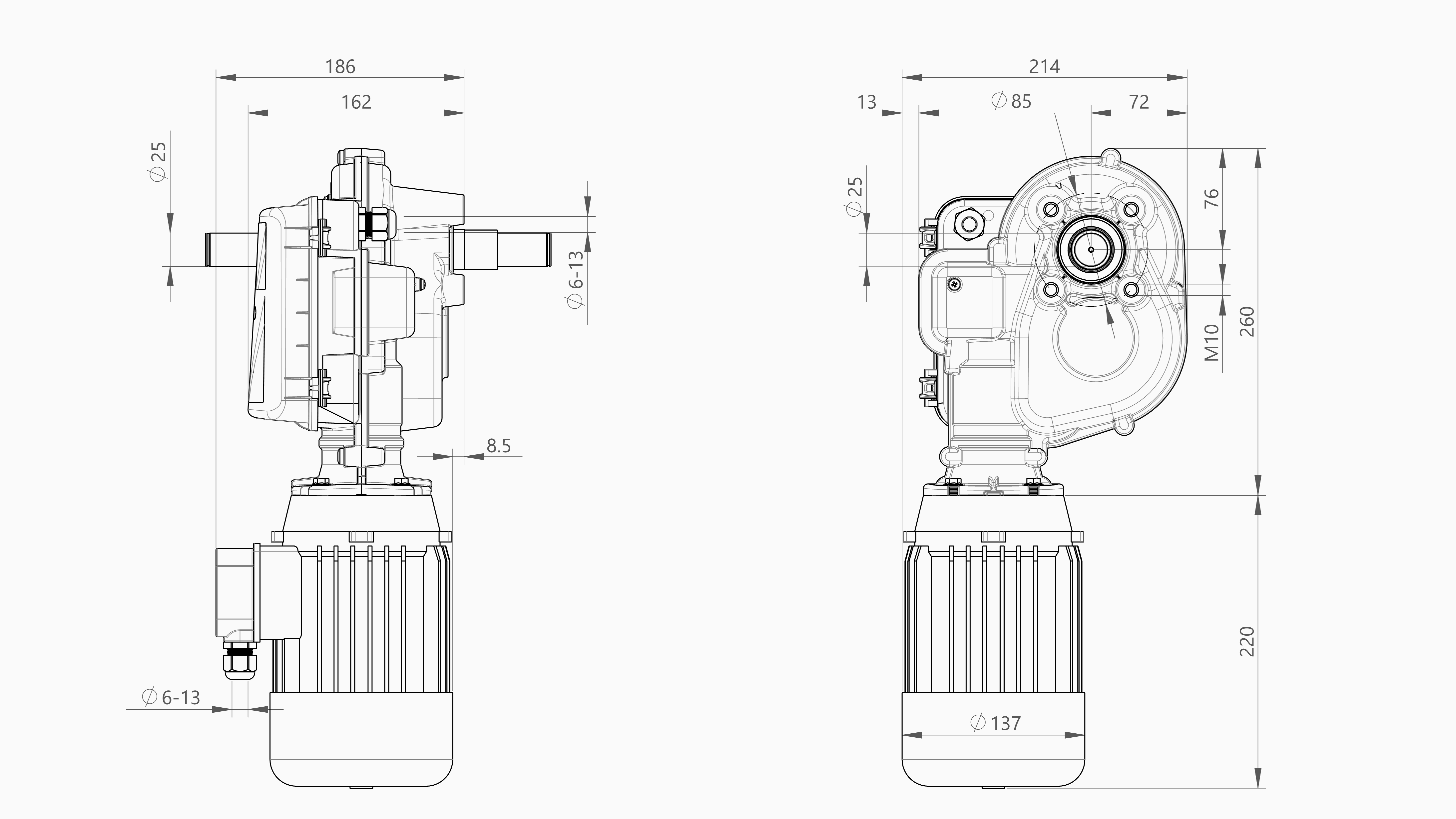 - Modulair opgebouwd, elektromotor is eenvoudig te (de)monteren