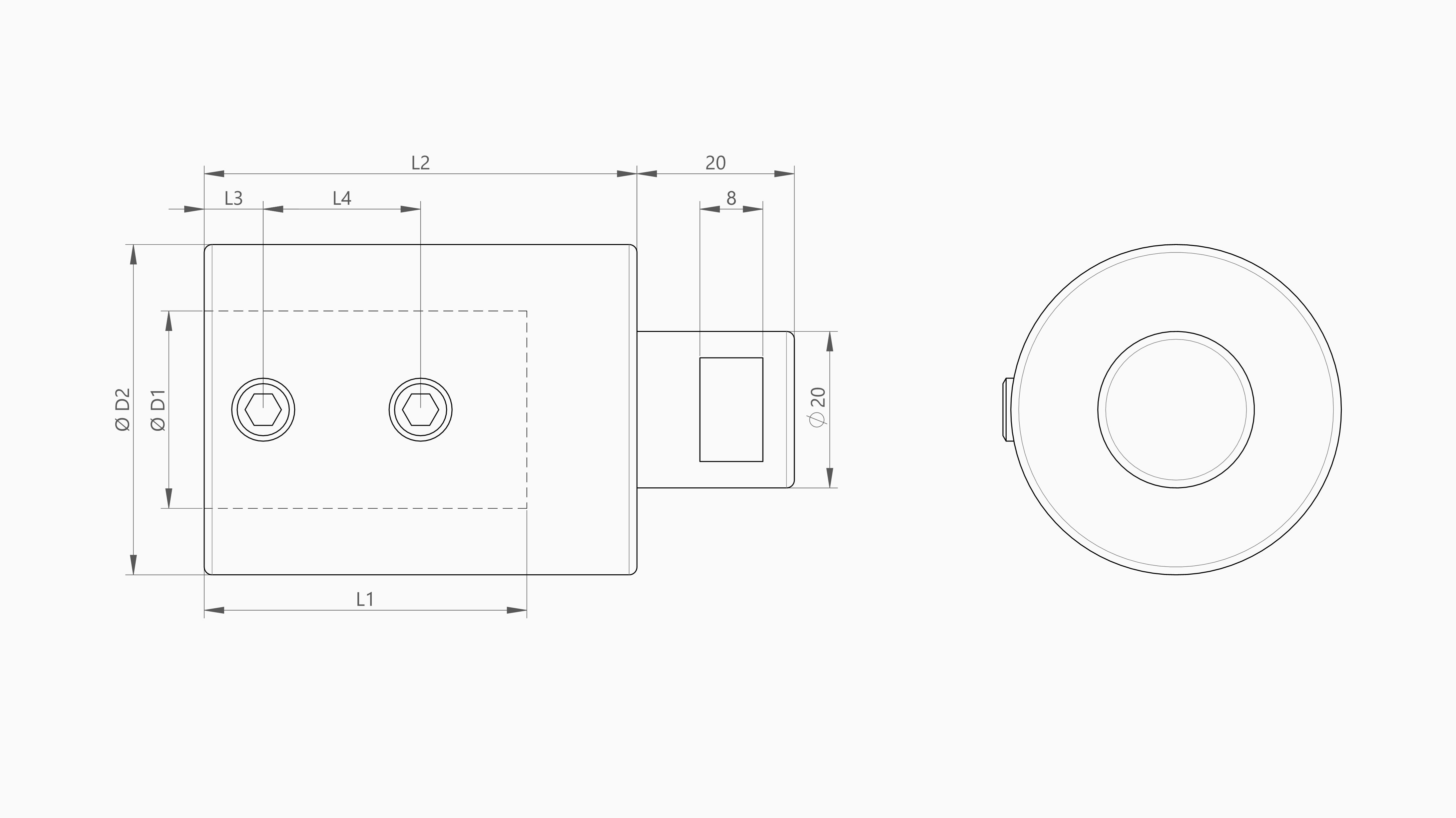 | Artikel | Omschrijving | D1 [mm] | D2 [mm] | L1 [mm] | L2 [mm] | L3 [mm] | L4 [mm] | m [kg] |