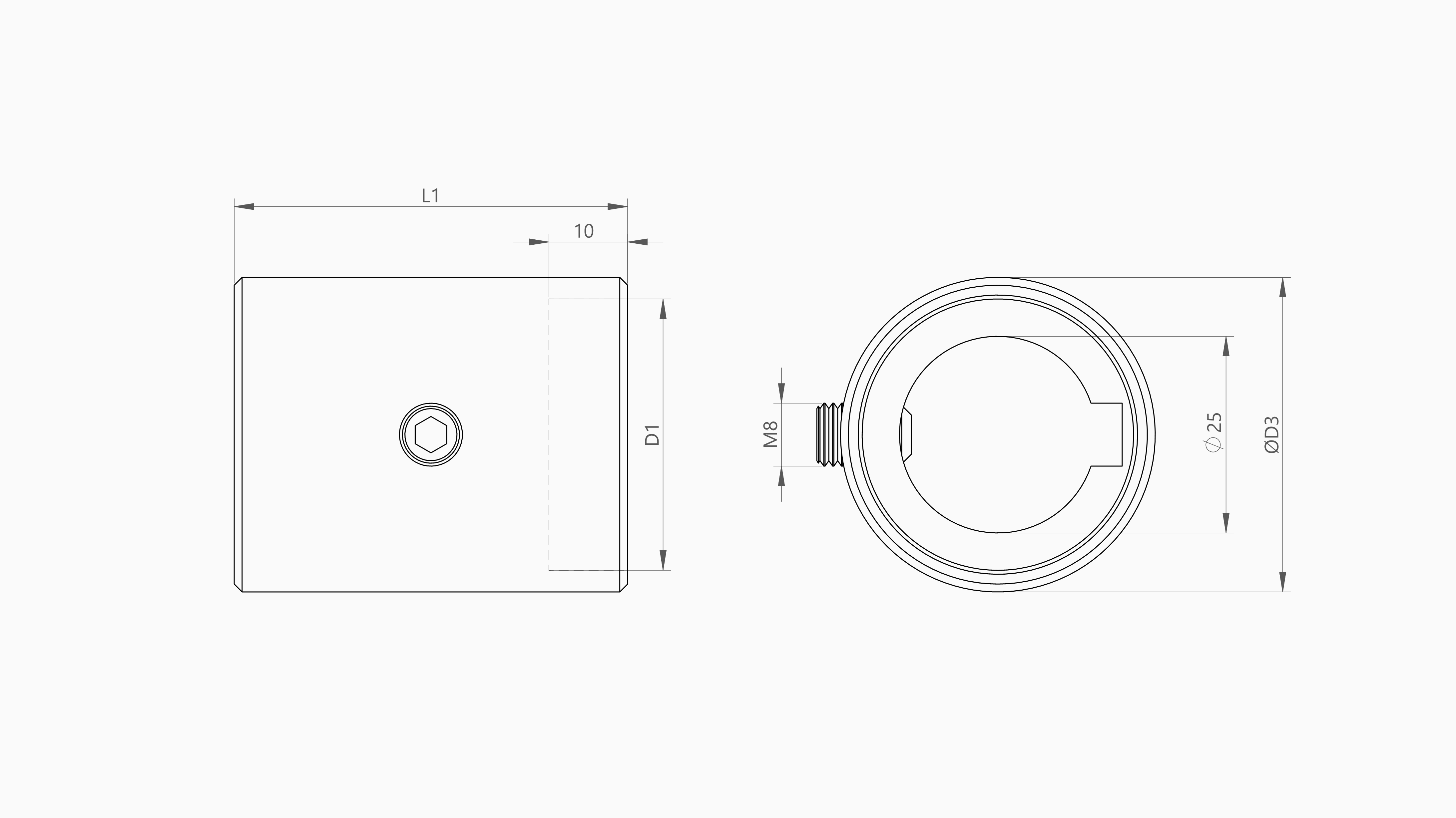 | Artikel | Omschrijving | D1 [mm] | D2 [mm] | D3 [mm] | L1 [mm] | m [kg] |