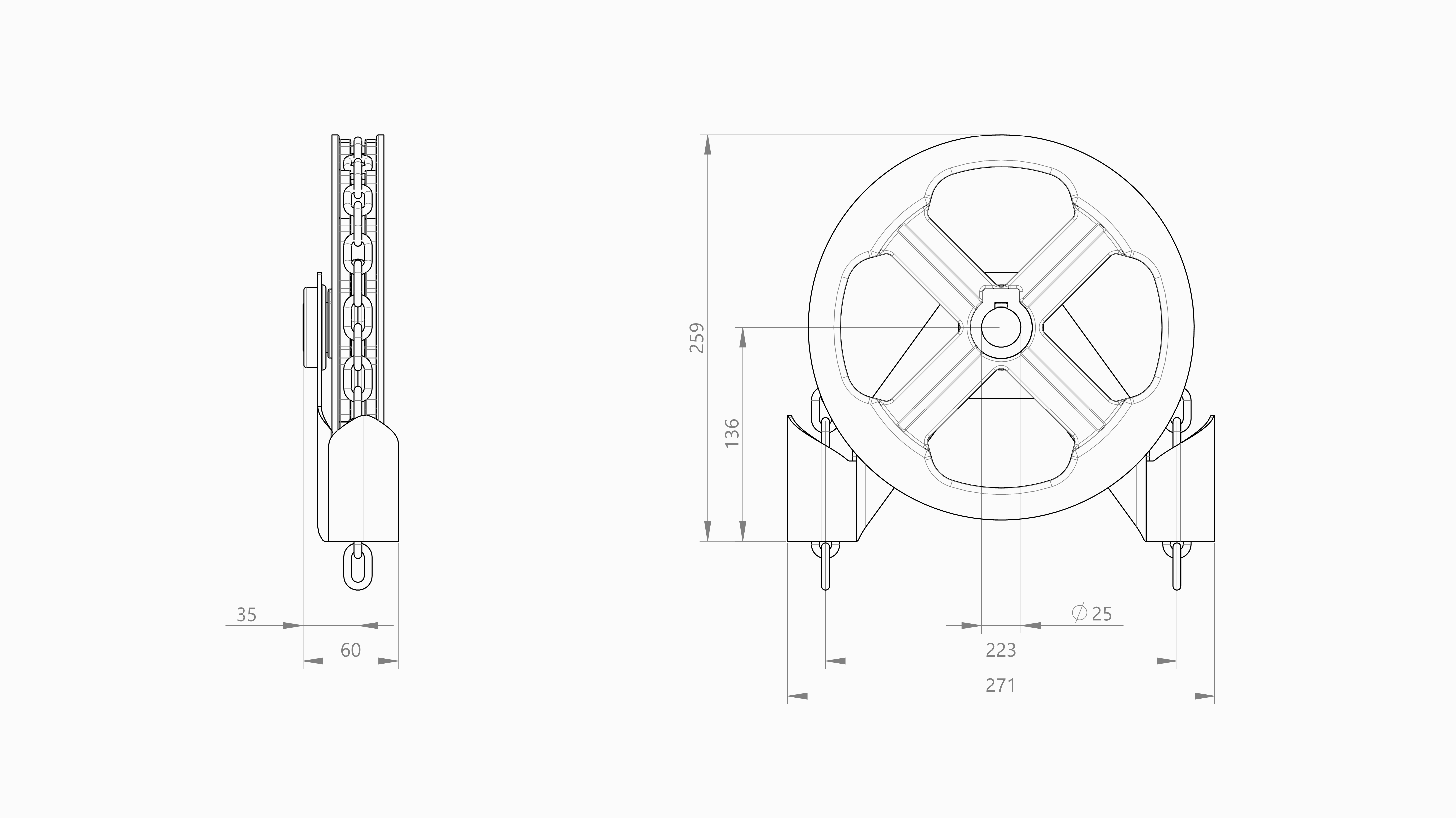 | P.NS.D25.L80 | Nestenschijf D250 d1" ketting 8m + beugel | 7,7 |