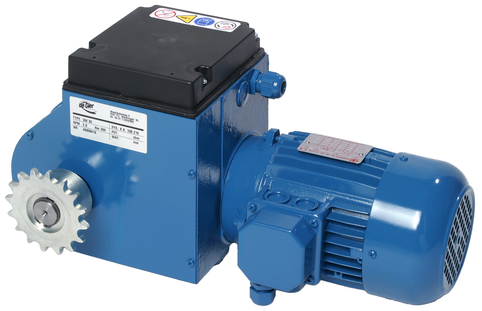 GW-motorreductoren van De Gier kennen een uniek en slim modulair design. Een 3-traps reductor zorgt voor de reductie van de hoogfrequente beweging van een elektromotor, naar een laagfrequente beweging met zeer veel kracht. In tegenstelling tot vergelijkbare spelers heeft De Gier gekozen voor het plaatsen van het wormwiel in de eerste trap, waardoor de grootste vertraging ontstaat. GW-motorreductoren zijn daardoor zeer compact, krachtig en ze bieden een uitstekende zelfremmendheid.