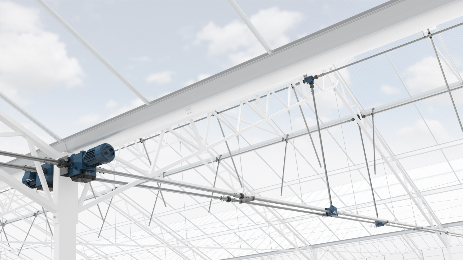 Contact opnemenDoorlopende nokluchting is een natuurlijke vorm van ventilatie. Hierbij scharnieren ramen in de nok over bijna de volledige lengte van de breedkap kas. Parallel aan het raam loopt een aandrijfbuis met daarop rondselunits die tandheugels aandrijven en ramen openen en sluiten. De aandrijfbuizen wordt indirect aangedreven door wormwielkasten, haakse keerkasten en één snellopende motorreductor.