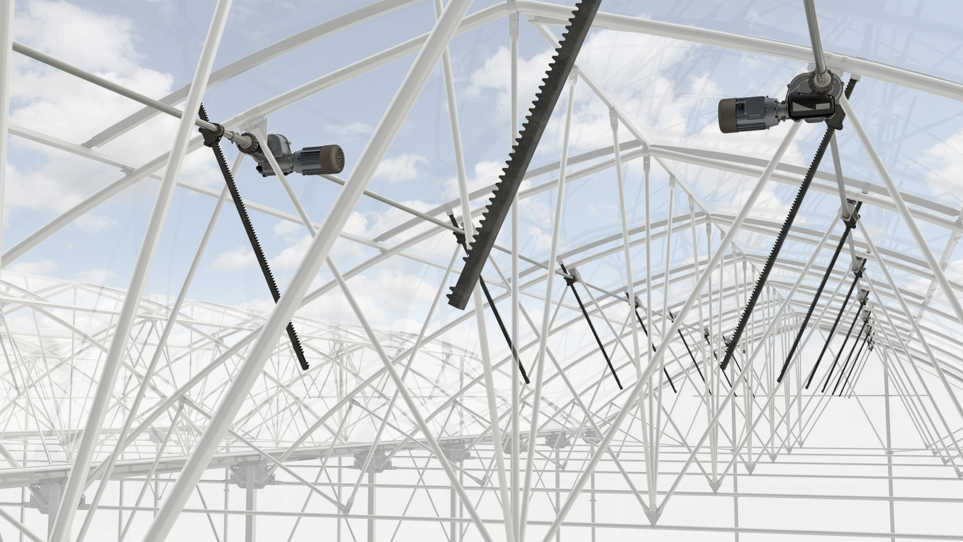 Contact opnemenDoorlopende nokluchting is een natuurlijke vorm van ventilatie. Hierbij scharnieren ramen in de nok over de volledige lengte van de foliekas. Parallel aan het raam loopt een aandrijfbuis met daarop rondselunits die tandheugels aandrijven en ramen openen of sluiten. De aandrijfbuis wordt aangedreven door een zelfremmende elektrisch- of handaangedreven tandwielkast.
