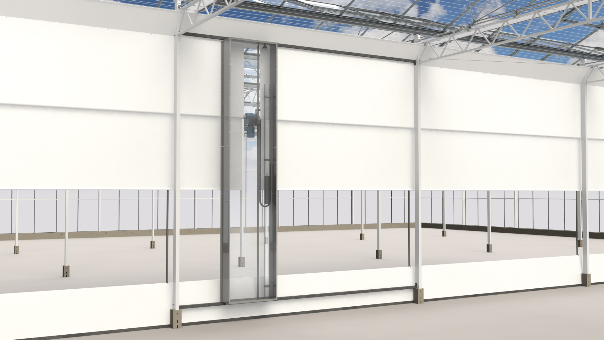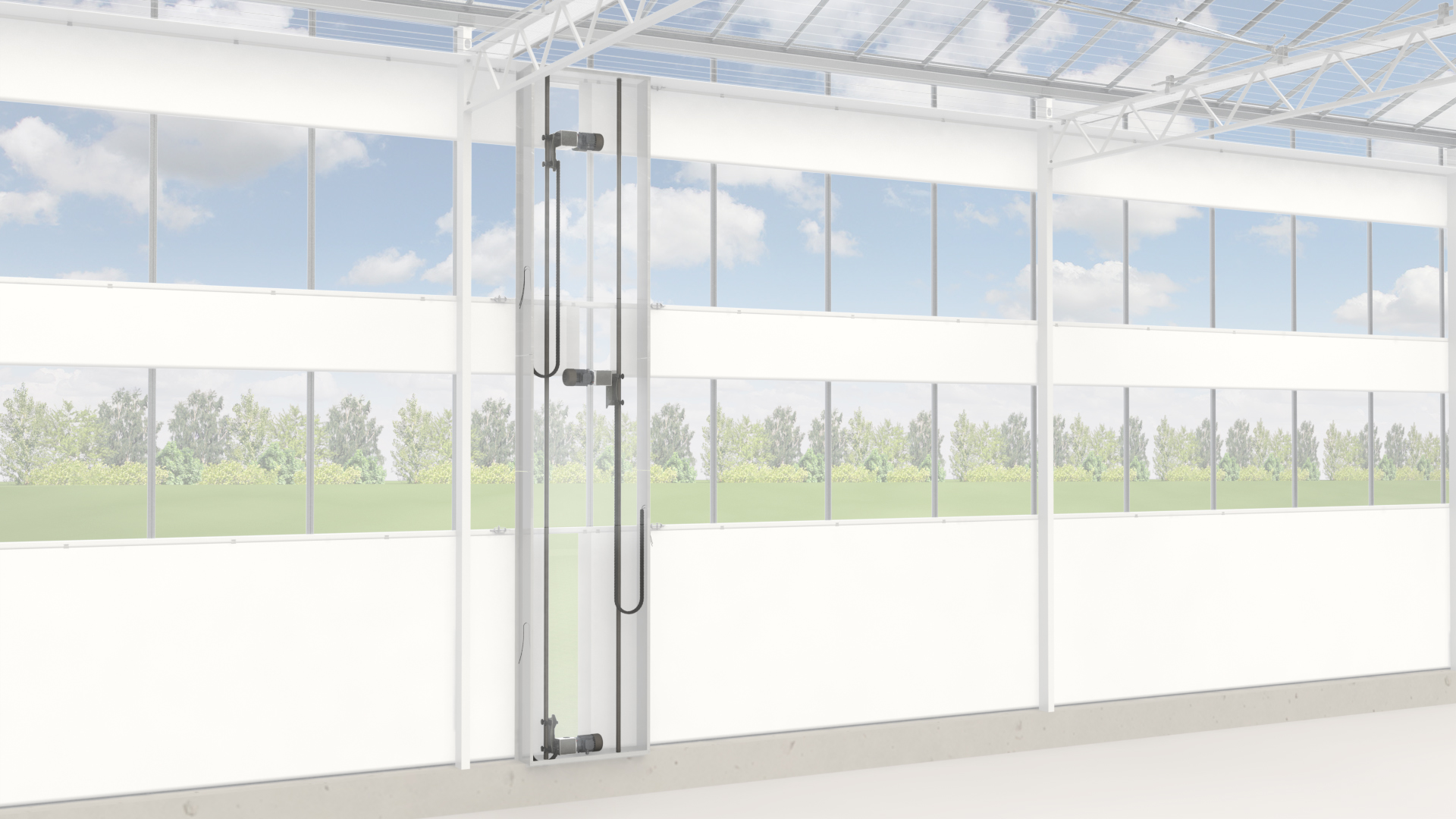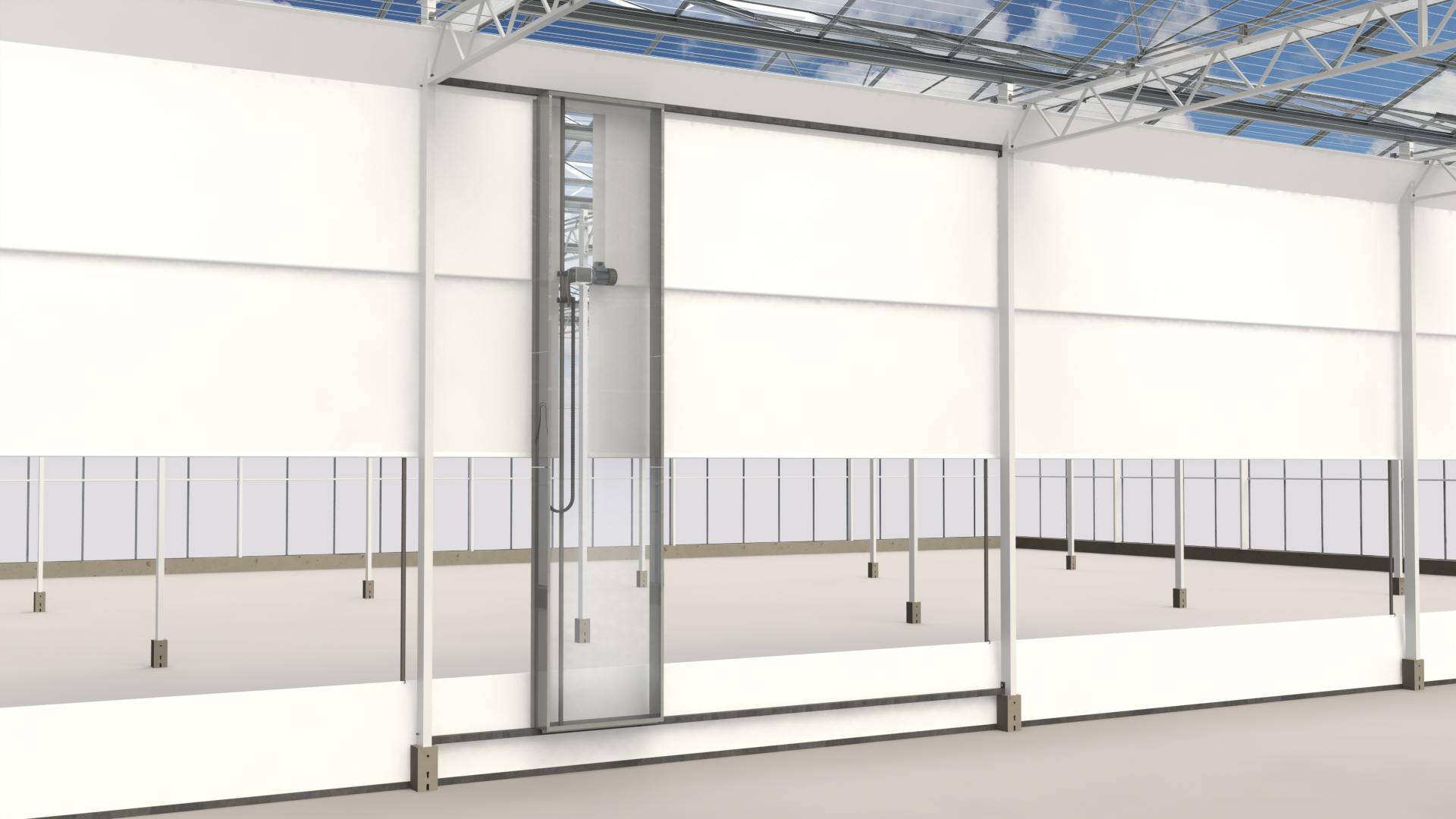 Contact opnemenTwin-wandschermsystemen worden toegepast in alle kas types om afdelingen (tijdelijk) van elkaar te kunnen scheiden. Het (verduisterings-) schermdoek hangt aan de bovenzijde met clips aan een staalkabel. Tussen het bovenste en onderste deel van het scherm bevindt zich de twin wikkelbuis en de GXP-motorreductor. Het onderste deel van het scherm is voorzien van verzwaringsbuis.